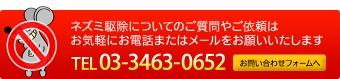 | カウンターや客席でのネズミの発見は、お客様に精神的苦痛を与えます。 またお店のイメージダウンに直結し、その回復には相当なコストと時間が必要です。 【ネズミ防除作業】 |